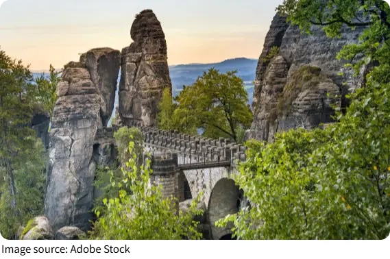 - Bastei Viewpoint (Germany): Easy 1.5-hour round trip; $3 entry; excellent for sunrise or sunset views