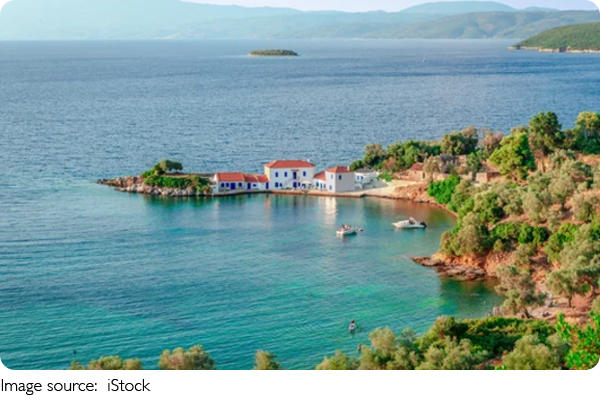 • The nearest airport is in Kefalonia, followed by a drive through winding mountain roads